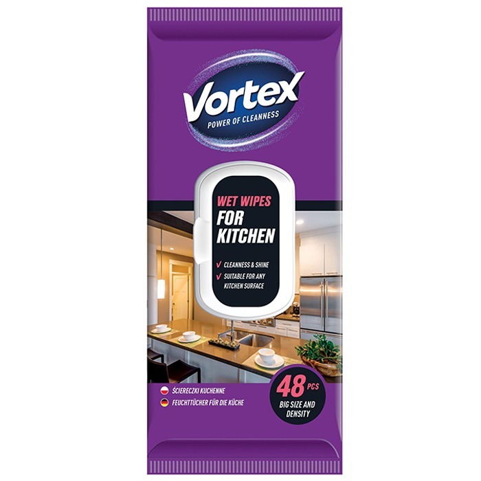 Vortex köögilapid on tõhusad ja mugavad niisked puhastuslapid, mis on spetsiaalselt mõeldud köögipindade puhastamiseks — eemaldavad rasva, toidujäägid ja plekid kiirelt ning lihtsalt. Lapid on piisava suuruse ja tugevusega, et puhastada erinevaid köögipindu nagu tööpinnad, pliidiplaadid, seadmed, lauanõud ja lauad. Vortexi köögilapid tagavad puhas ja läikiv tulemus ilma vett ja eraldi puhastusvahendeid kasutamata.
